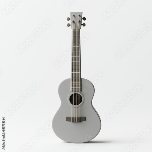 Fototapeta premium Cute Silver Acoustic Guitar 3D Render: Minimalist Pastel Design