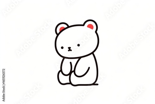 © Ruiqi, Fototapeta premium Cute simple bear sitting down, minimalist doodle vector line art, black outline on white background, child-friendly clipart design.