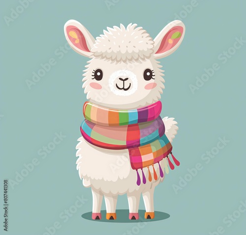 Naklejka premium Cute simple illustration of an alpaca, flat graphic, simple shapes, pastel background, simple details, cute cartoon style, children's book illustration, digital art medium, simple design