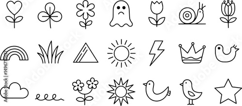 © vector Art, Fototapeta premium Cute simple line art icons collection doodle style