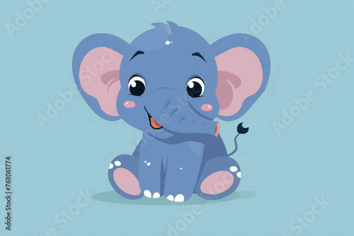 © Tanya, Naklejka premium Cute sitting blue baby elephant on a blue background.