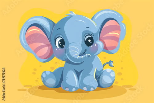 © Tanya, Fototapeta premium Cute sitting blue baby elephant on a yellow background.
