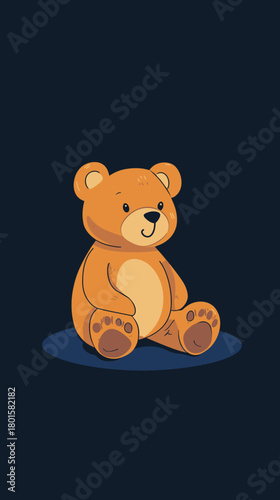 © Perfect Vector, Fototapeta premium cute sitting brown teddy bear plush toy with light belly and paw pads cartoon illustration on dark background soft children gift character vector