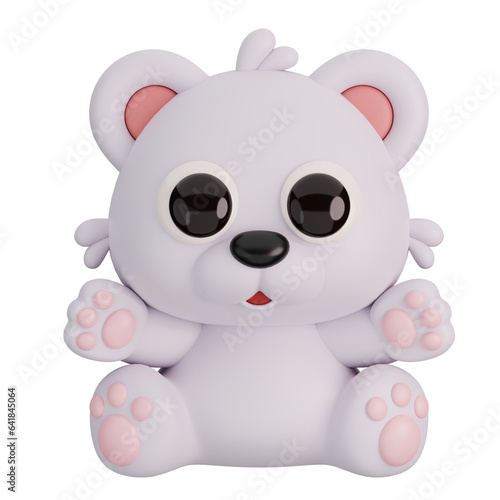 Fototapeta premium Cute Sitting Polar Bear Isolated. Animals Cartoon Style Icon Concept. 3D...
