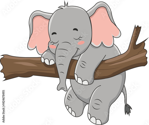 Fototapeta premium Cute Sleeping Baby Elephant on Branch