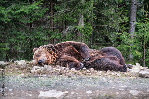 © Volodymyr Shevchuk, Obraz premium cute sleeping brown bear
