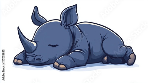 © Serhii, Obraz premium Cute sleeping rhinoceros 2D Logo on a white background