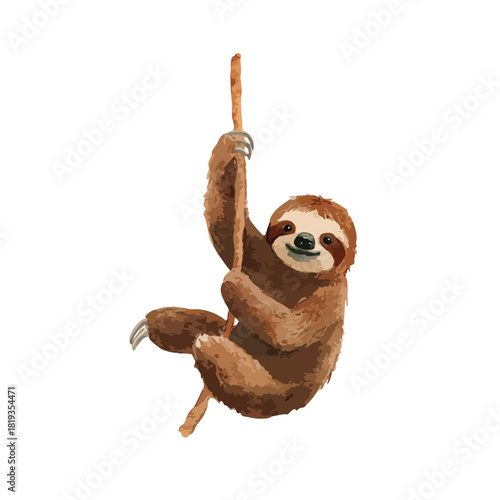 Obraz premium Cute Sloth Hanging on Branch Illustration.