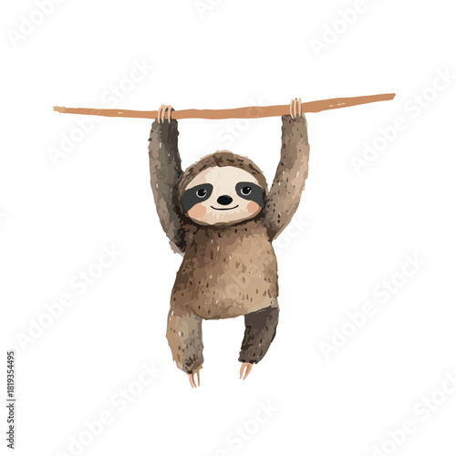 Obraz premium Cute Sloth Hanging on Branch Watercolor Illustration 1.