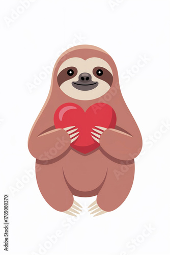 © Iryna, Naklejka premium Cute sloth holding a heart, representing love and affection in a colorful design