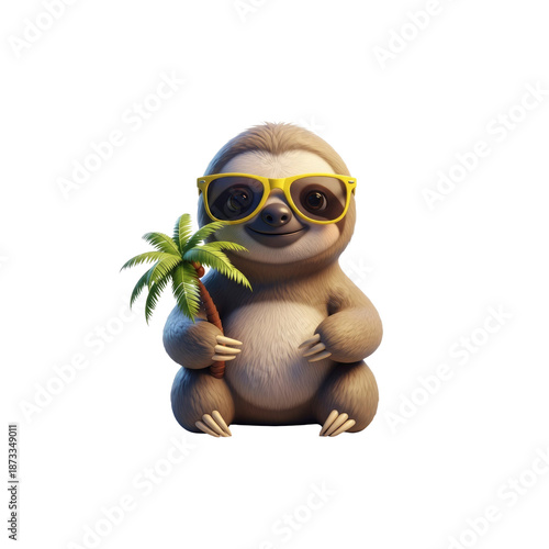 © Cove Art, Obraz premium Cute sloth holding palm tree