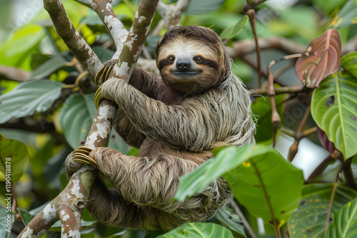 © Kristina, Fototapeta premium Cute sloth on a tree branch