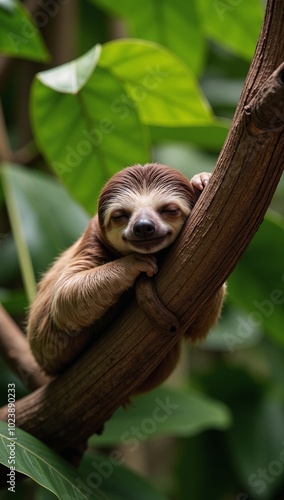 Fototapeta premium Cute Sloth Sleeping in Jungle Wildlife Illustration Travel Nature