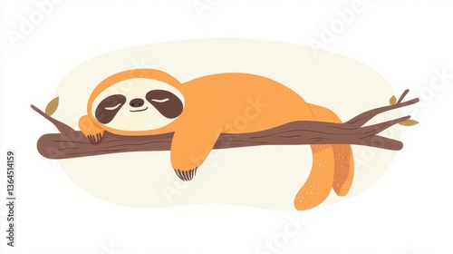 © background, Obraz premium Cute Sloth Sleeping Tree Branch Cartoon Illustration. (5)