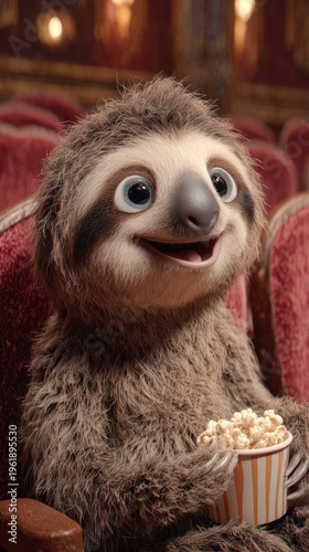 © Dar1930, Fototapeta premium Cute Sloth Watching Movie with Popcorn – Generative AI