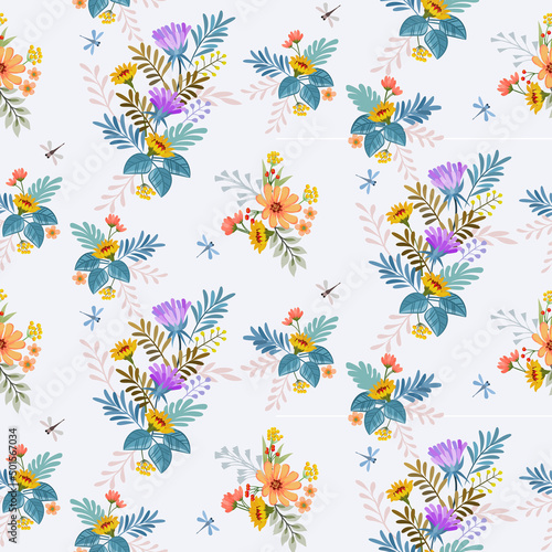 © teerawat, Obraz premium Cute small blooming flowers seamless pattern.
