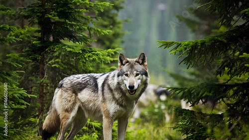 © Shahed Shoeb, Naklejka premium Cute smiley wolf in the green forest