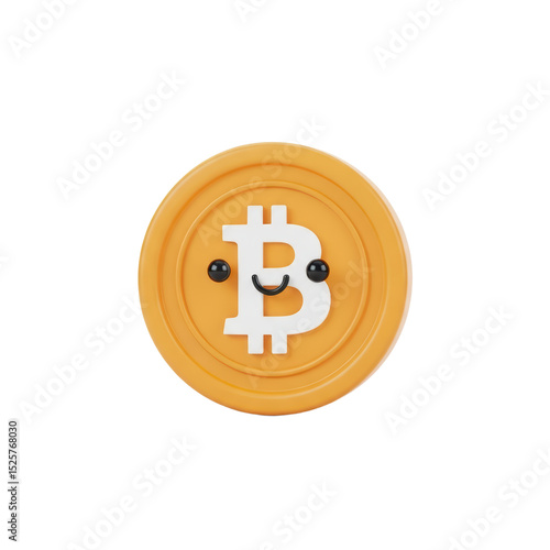 Fototapeta premium Cute Smiling Bitcoin Coin with Cartoon Face on White Background