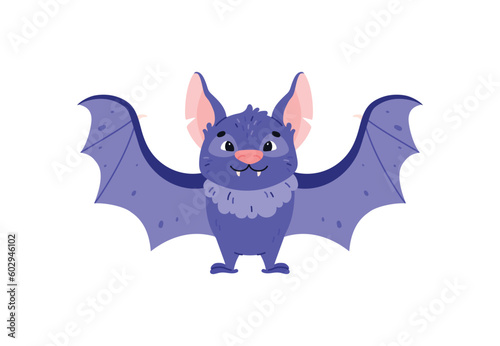Obraz premium Cute smiling blue bat flat style, vector illustration