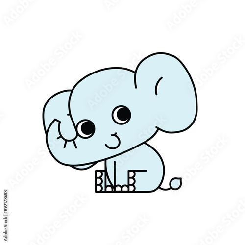 Fototapeta premium Cute smiling cartoon baby elephant sitting. African animals. Vector...