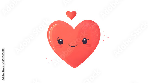 Fototapeta premium Cute smiling cartoon heart with blush and small heart above