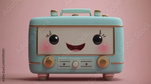 © STOCK MANIA, Fototapeta premium Cute, smiling, pastel-blue retro radio. Happy expression