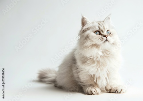 © Xingguo, Obraz premium Cute Smiling Persian cat Sitting on a White Background, Realistic HD Photography