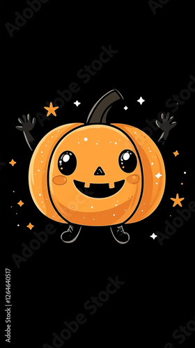 Fototapeta premium Cute smiling pumpkin character waving its black hands in a simple flat vector...
