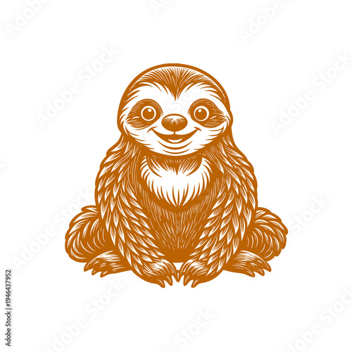 © davis, Fototapeta premium Cute smiling sloth illustration in a vintage woodcut style, sitting and looking friendly.