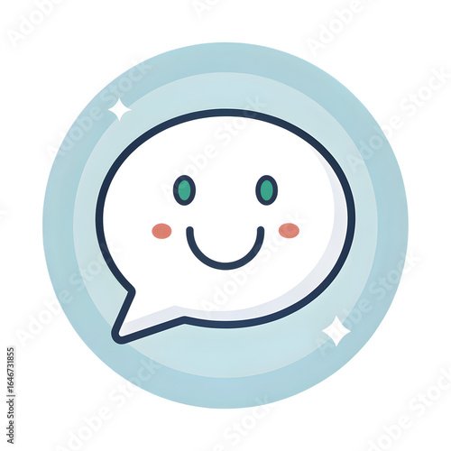 Fototapeta premium Cute smiling speech bubble with happy face and sparkles