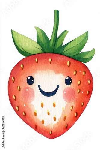 Obraz premium Cute Smiling Strawberry Illustration in Watercolor Style