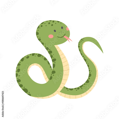 Fototapeta premium Cute snake isolated on white background. Cartoon nursery art baby character.