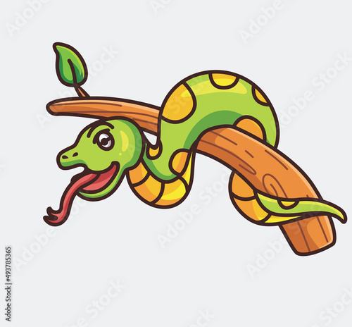 Fototapeta premium cute snake lay on tree branch. cartoon animal nature concept Isolated illustration. Flat Style suitable for Sticker Icon Design Premium Logo vector. Mascot Character