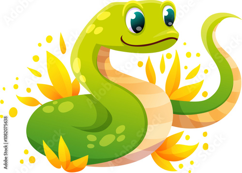 Fototapeta premium Cute snake, Smiling kawaii serpent. Chinese 2025 New Year symbol.
