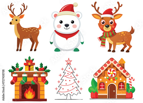 © sumanavact, Fototapeta premium Cute Snowman with Gifts Vector Set – Christmas Holiday Cartoon Collection