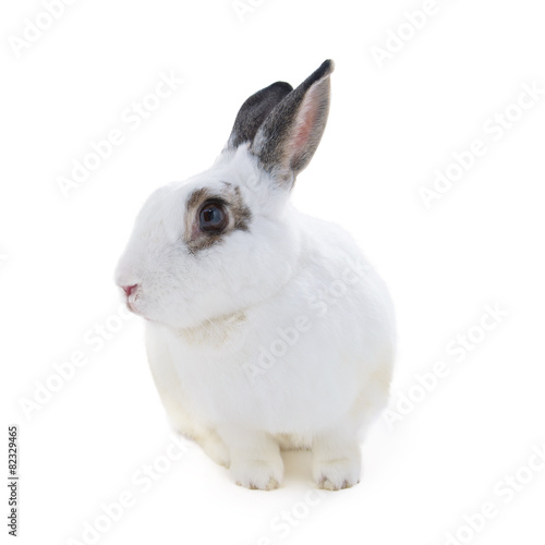 Obraz premium Cute spotted white rabbit on white isolated