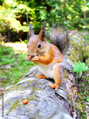 © tatulaju, Obraz premium Cute squirrel eating a nut, closeup