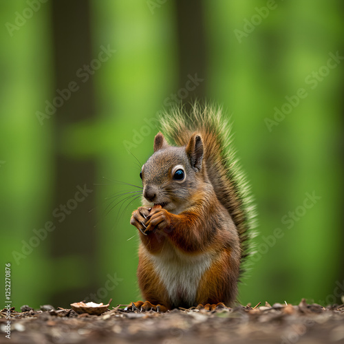 © MdMasud, Obraz premium Cute Squirrel Eating Nuts in Forest Environment