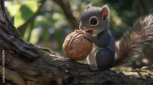 © pinporn manosri, Fototapeta premium Cute Squirrel Enjoying a Walnut in a Natural Green Environment