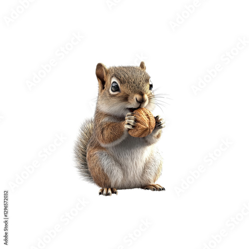 Fototapeta premium Cute Squirrel Holding Nut in Front of White Background