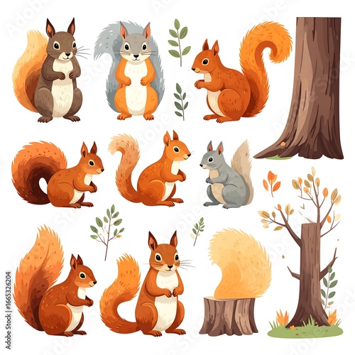 © Kerjo, Fototapeta premium Cute squirrel illustrations in autumnal setting