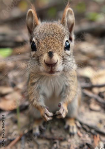 Fototapeta premium Cute squirrel, looking into camera. Close-up. Wildlife, cute.