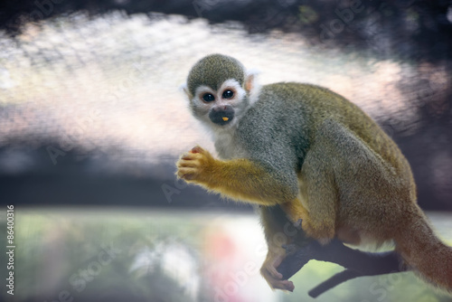 Obraz premium Cute squirrel monkey in a cage