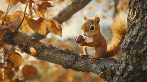 © @adha, Obraz premium Cute Squirrel on a Branch