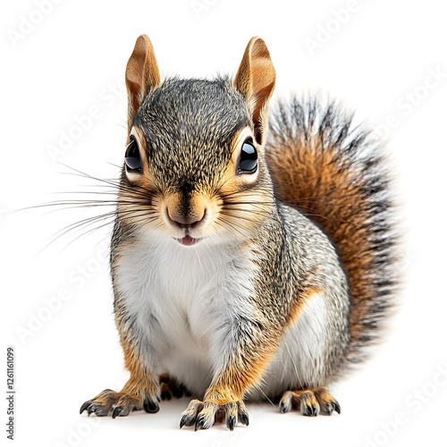 Fototapeta premium Cute squirrel posing, white background, wildlife, nature (1)