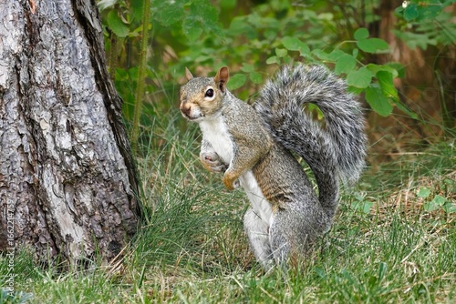 © Gregory Johnston, Naklejka premium Cute squirrel standing by a tree.
