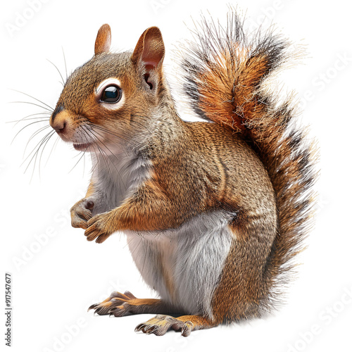 © Nuria, Fototapeta premium "Cute Squirrel with Bushy Tail, Isolated on Transparent Background."