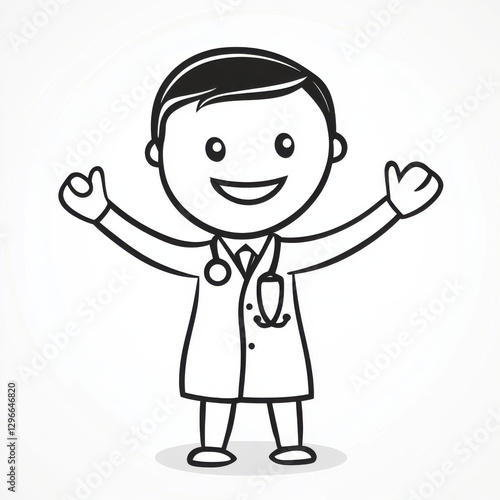 Obraz premium Cute stick figure doctor with stethoscope, smiling and welcoming