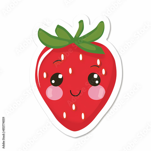 Obraz premium Cute strawberry catoon on a White Canvas Sticker,vector image