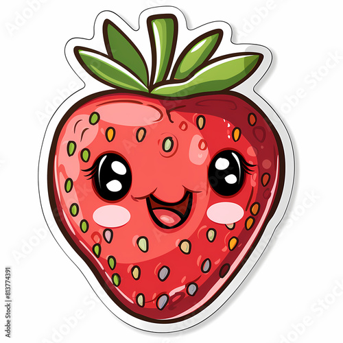 Obraz premium Cute strawberry catoon on a White Canvas Sticker,vector image